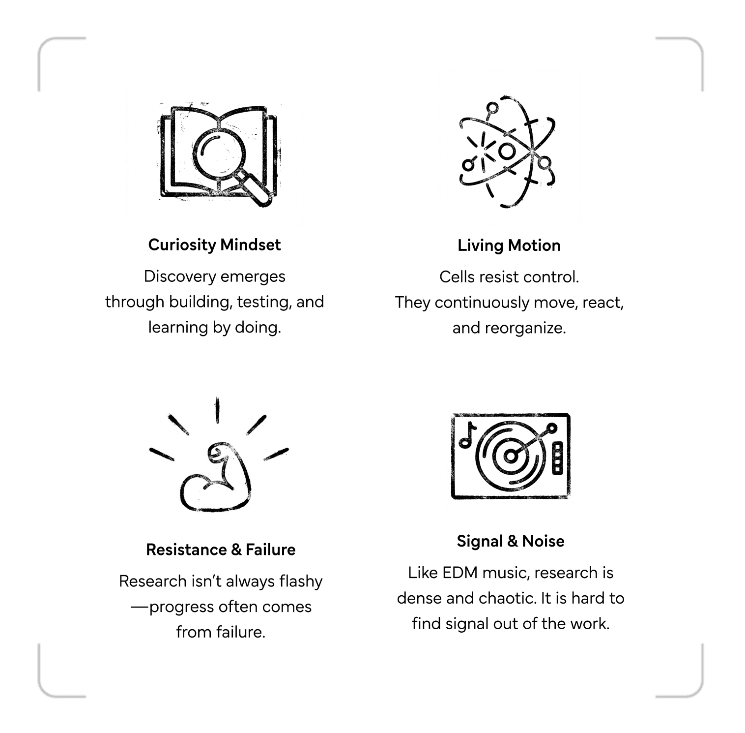 Watching cells reminded me of the fragility and power of living systems. That moment inspired me to make cellular life tangible through design.