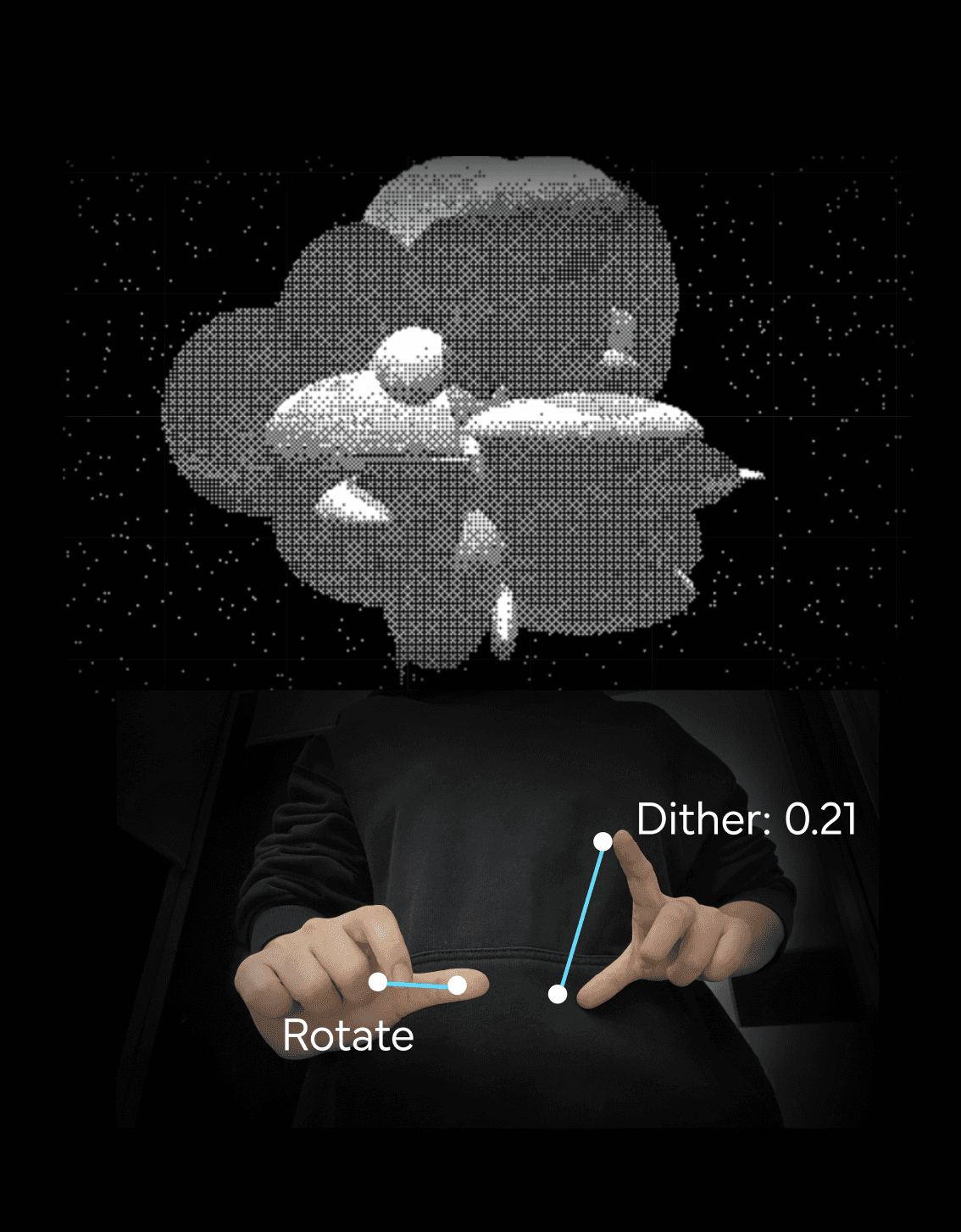 Using TouchDesigner, I built a node-based interactive system driven by real-time finger tracking. Viewers influence how cells shift and reorganize through their hand movements, experiencing the tension between digital control and biological unpredictability.
