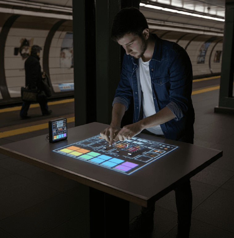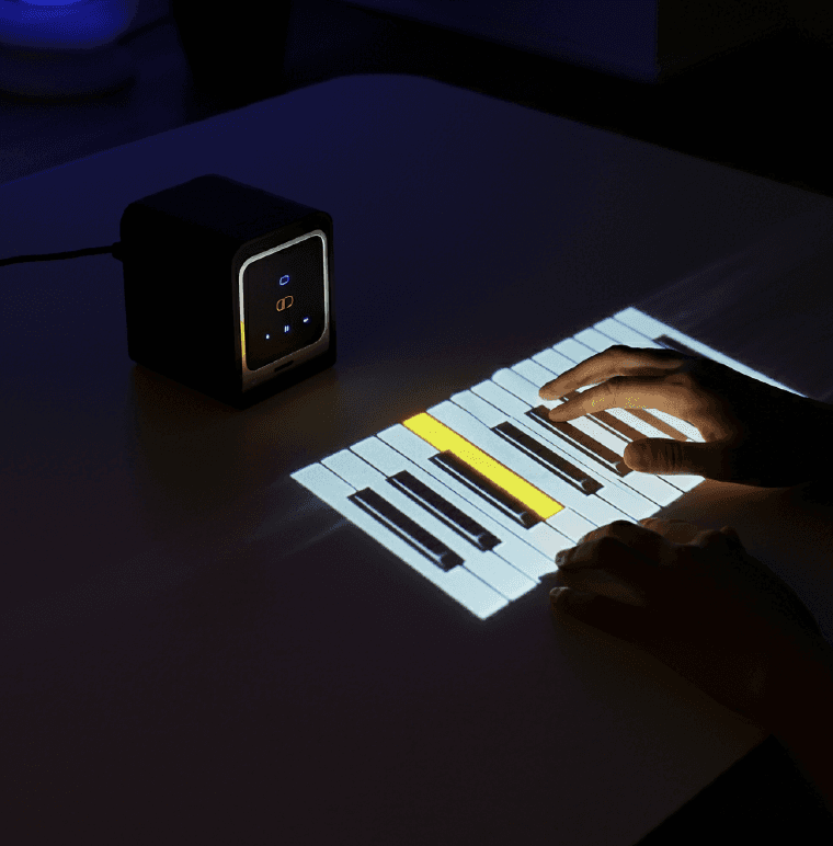 PocketPro reframes AI as a music co-pilot. Inspired by early projection keyboard technologies, the project imagines a lightweight, portable interface that turns any surface into a playable space.