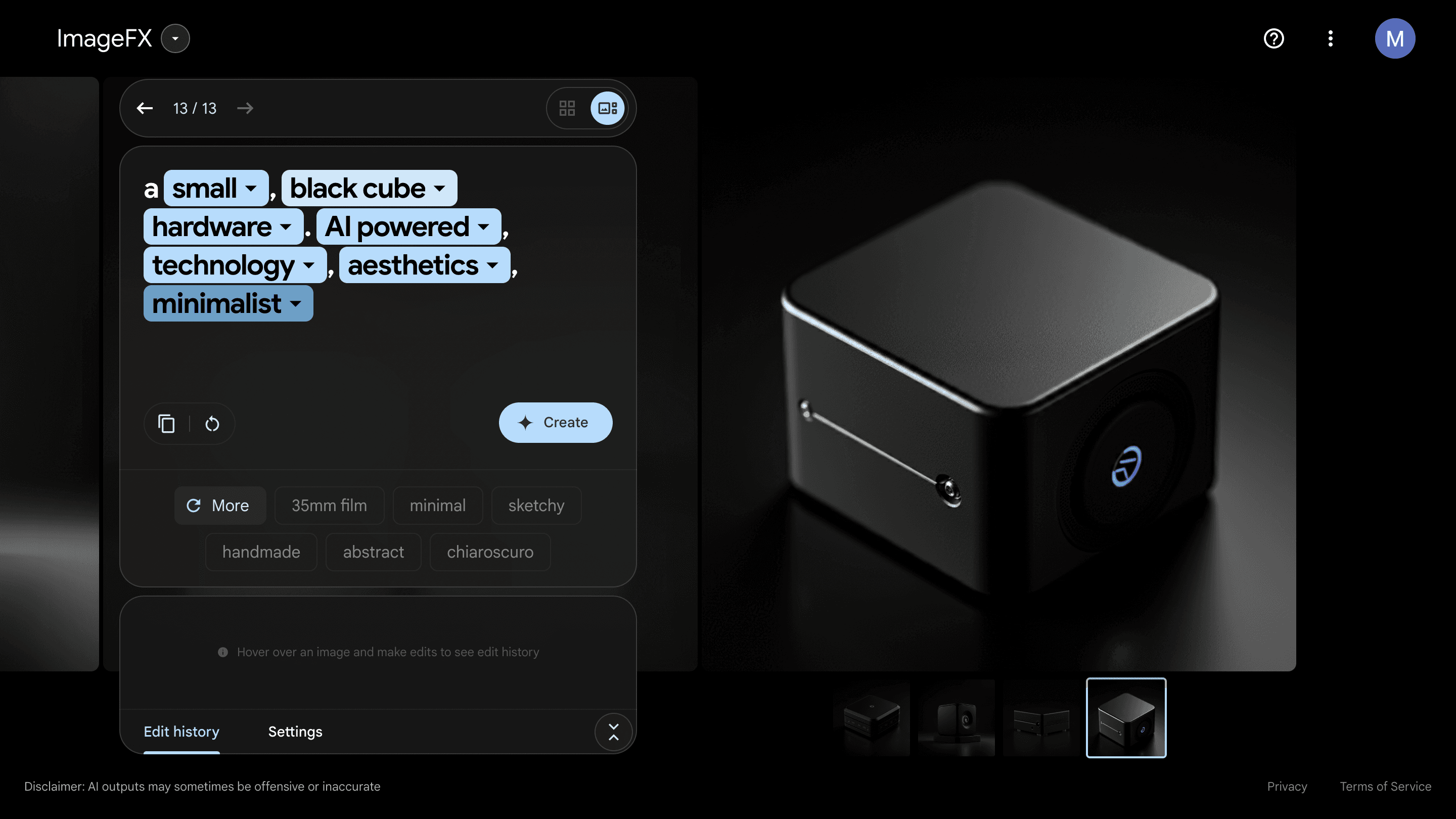 Using Google Lab's ImageFX, we explored different forms, scales, and material qualities to imagine a music tool that felt both portable and expressive.